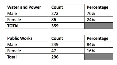 However, according to the International City/County Management Association, women also hold 30 percent of department head positions, which is far afield from the reality in Pasadena, according to the city’s own records. Also, Fire and Safety, Public Works and Water and Power account for only 1,194 of the 1,820-person Pasadena government workforce.
